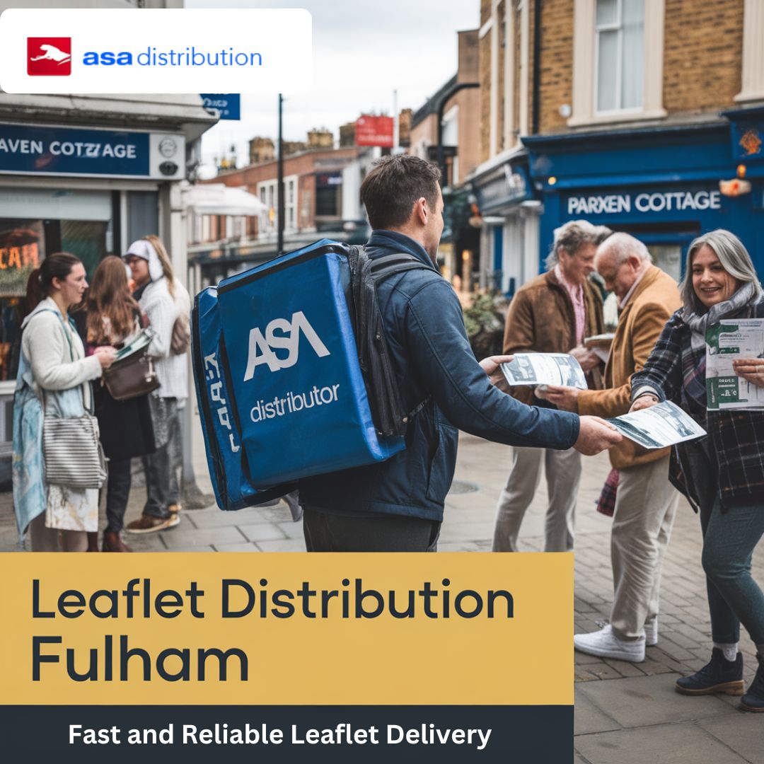 ASA Distribution makes leaflet distribution in Fulham easy. We deliver leaflets door-to-door and hand-to-hand in high-traffic areas like Fulham Broadway, North End Road Market, and residential streets. Our team knows the best locations to make sure your leaflets reach the right people.